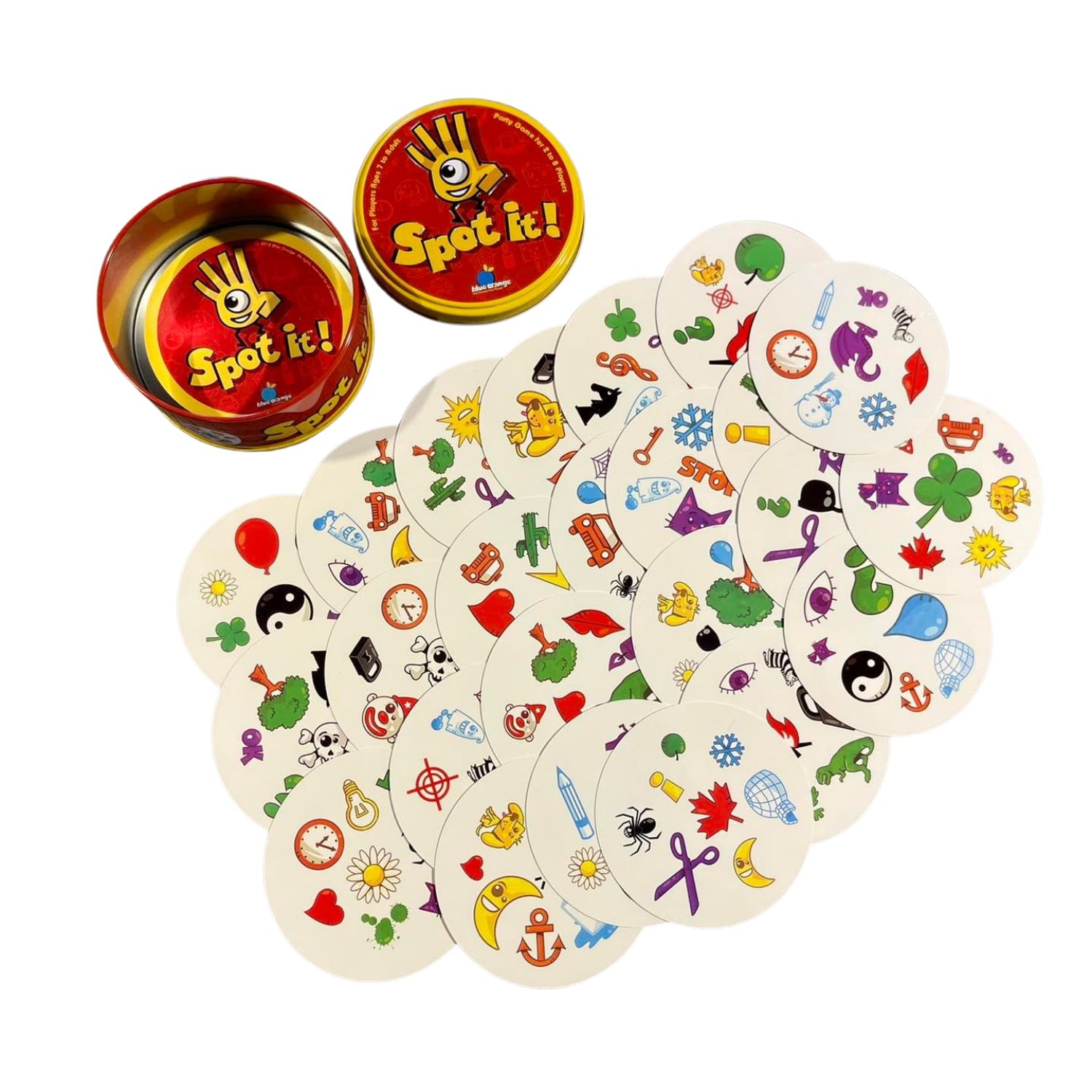 Spot it! არის სწრაფი დაკვირვების თამაში, სადაც მოთამაშეები ცდილობენ იპოვონ საერთო სიმბოლო ორ ბარათს შორის.